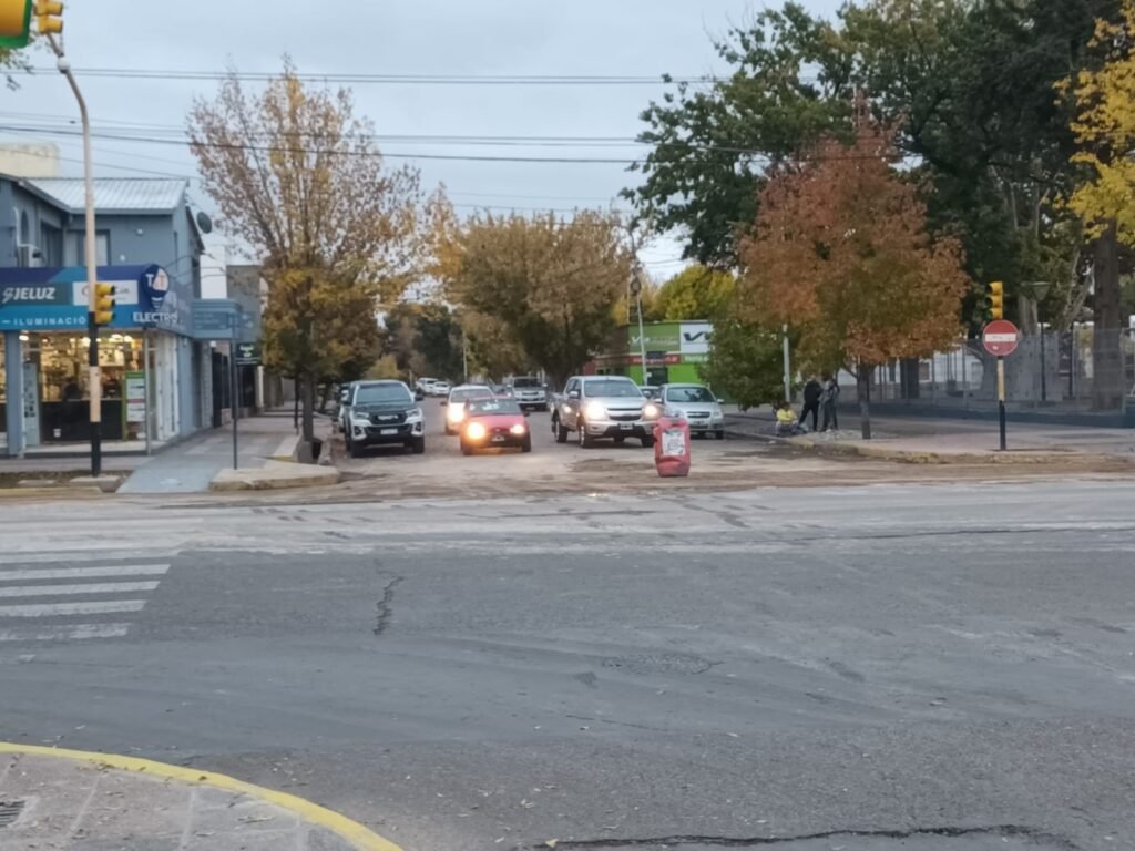 Mientras avanzan las tareas sobre la Avenida San Martín, en pleno centro de Tunuyán, de a poco se va retomando la normalidad en el tránsito.
