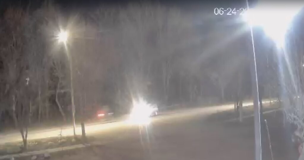 El hecho, quedó registrado por una cámara de seguridad, donde se ve que el motoclista quedó tendido en el asfalto.