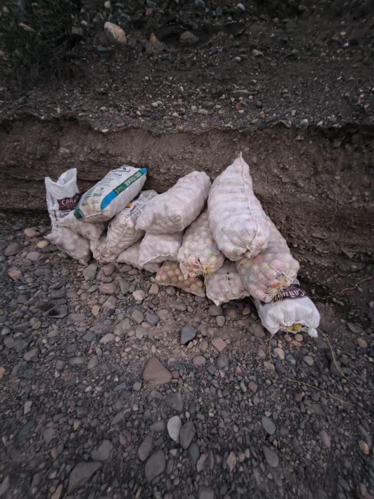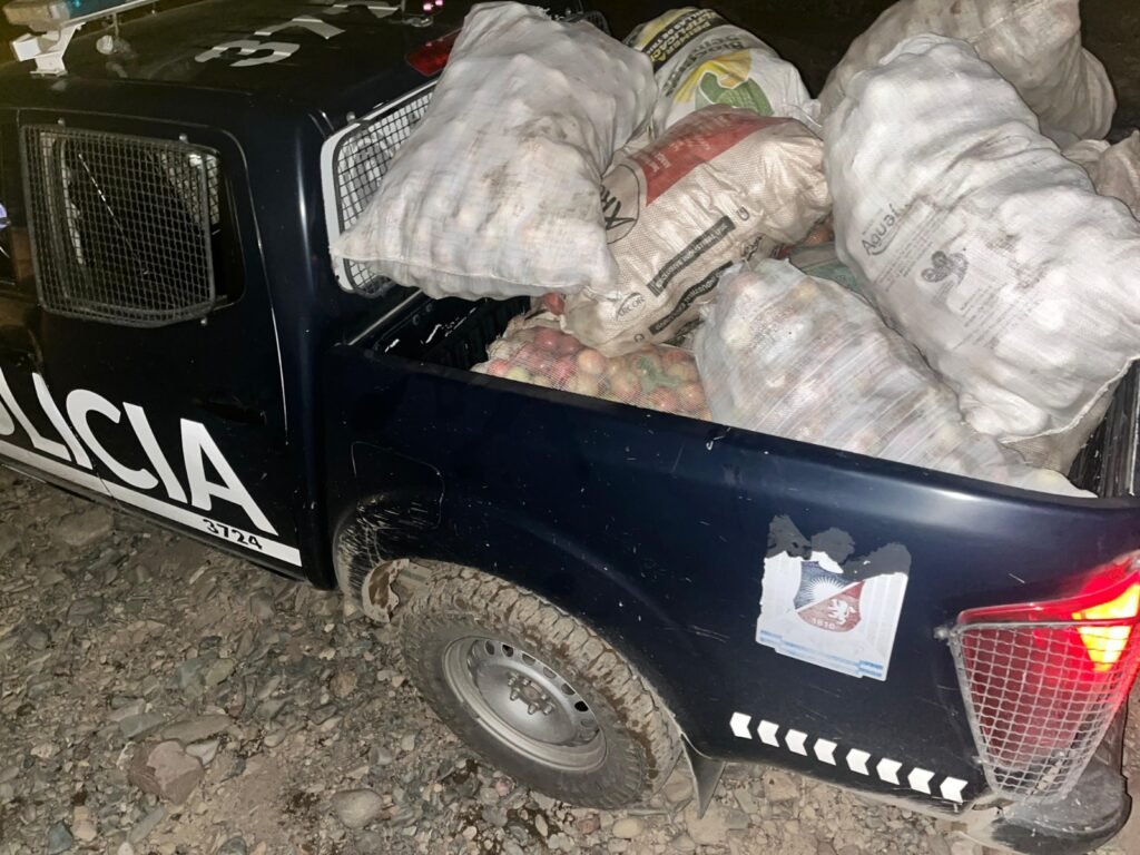 Minutos más tarde, encontraron en las inmediaciones del mencionado arroyo 30 bolsas de arpillera blancas con manzanas en su interior, distribuidas en dos grupos de 15 bolsas cada uno, con un peso aproximado de entre 40 y 50 kilos por bolsa.