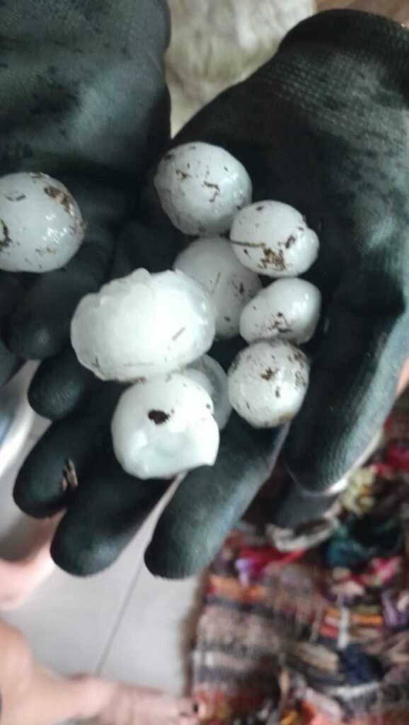 Según el reporte de varios vecinos de la zona, la piedra de importante tamaño arrasó con plantaciones de choclo dulce, zapallo, tomate y pimientos que se encuentran en plena producción. Algunos lectores nos enviaron imágenes que muestran el tamaño de la piedra que descargó la tormenta.