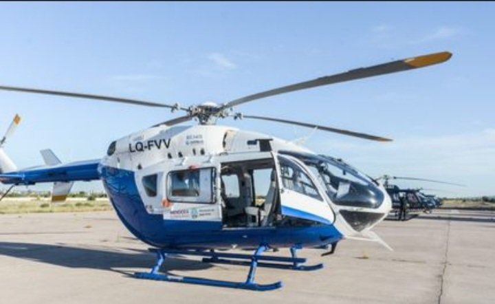 Se trata del Helicóptero Sanitario Halcón 3 que trasladará al Hospital Central de ciudad de Mendoza a un hombre de aproximadamente 60 años.