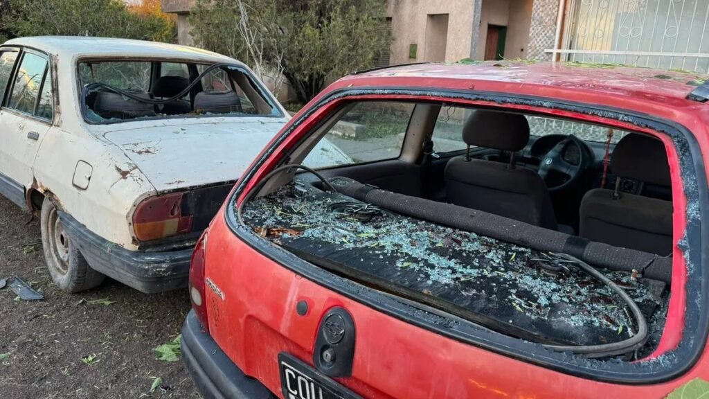 Autos que quedaron en la vía pública también sufrieron roturas de vidrios y abolladuras.
