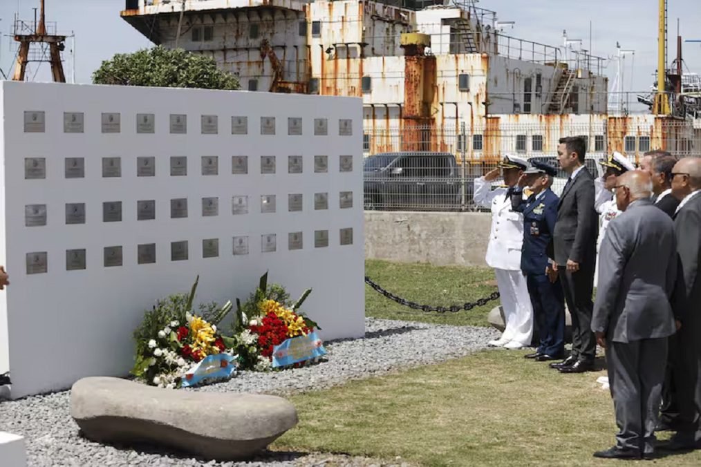 La ceremonia principal se realizó en la Escollera Norte, frente al Museo de la Fuerza de Submarinos, donde ya existe un memorial con placas que recuerdan a toda la tripulación del submarino ARA San Juan, que el 15 de noviembre de 2017 sufrió una implosión cuando navegaba frente a aguas patagónicas y con sentido a Mar del Plata.