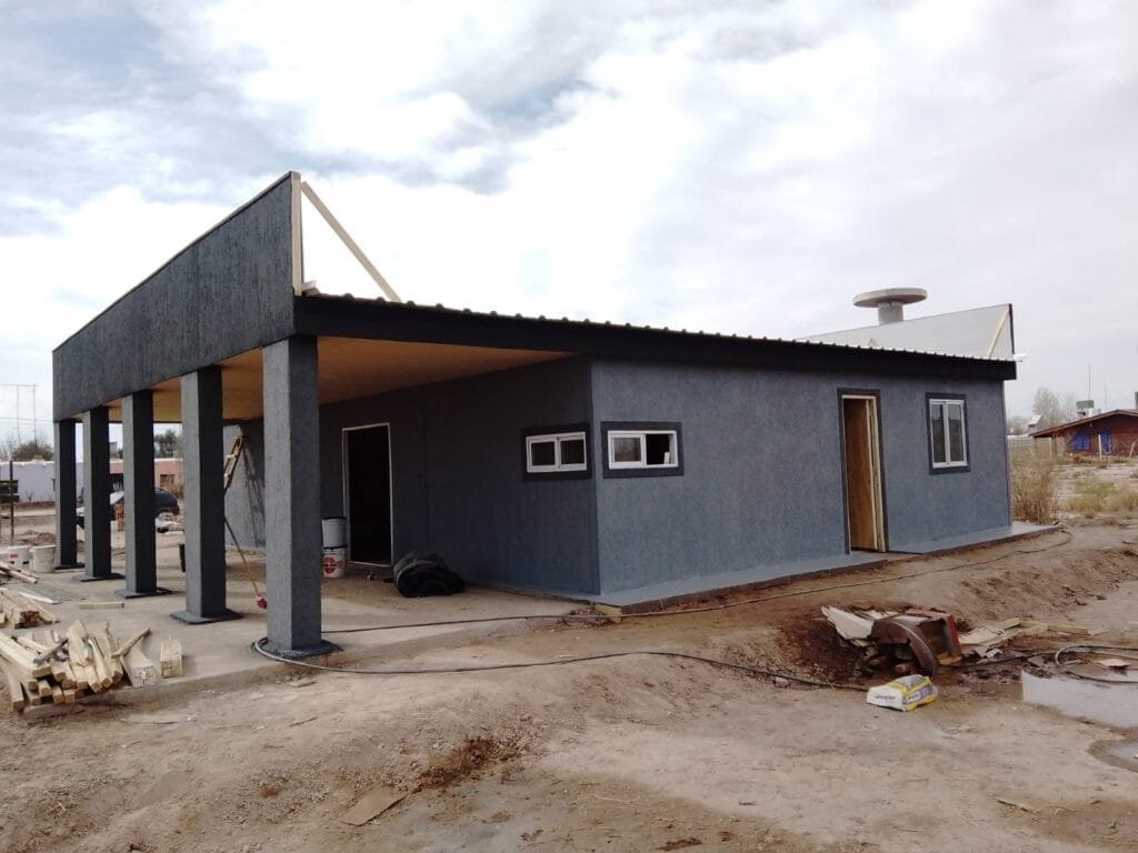 «Tenemos una promo, donde vienen tres dormis de 20 metros cuadrados con un baño incluido en $12.900.000 (doce millones novecientos pesos). Eso trae de regalo la platea, el flete, la cerámica sin colocar y sin pegamento, texturado con mano de obra y pintura, veredín de anclaje. Además, los accesorios de baño».