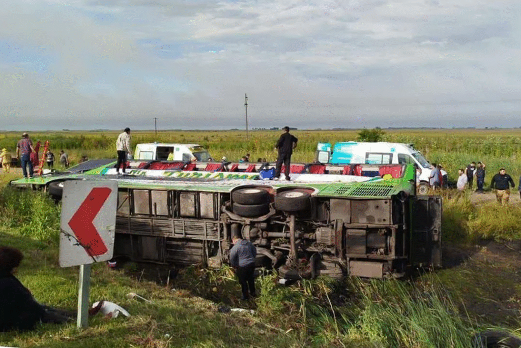 El hecho ocurrió este martes por la mañana a la altura de la localidad de General Pirán, cuando el micro turista, por circunstancias que se desconocen, volcó a la vera de la Ruta 2.